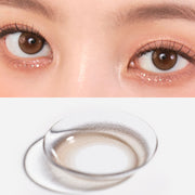 エアリーで軽やかな透明感のベージュブラウン。 アッシュカラーのリングフチで、生まれつきの瞳のように溶け込むナチュラルデザイン。