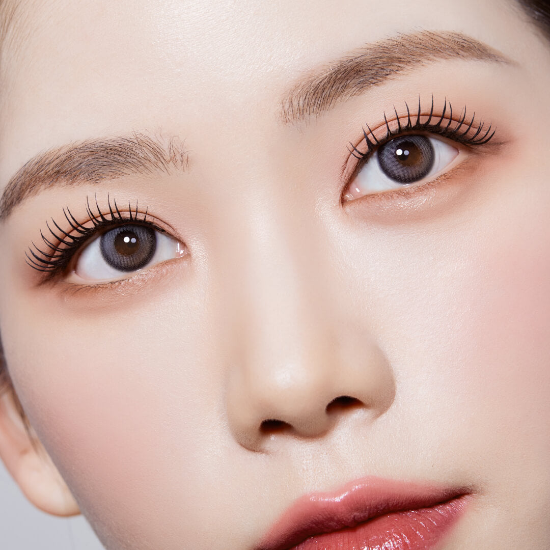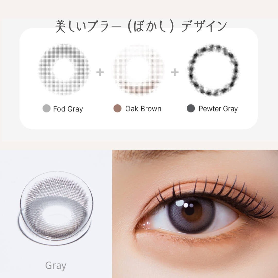 雨上がりのようなしっとりスモーキーなブラーリンググレー。 ポイントカラーにブラウンを仕込んで、魅力的な瞳に。