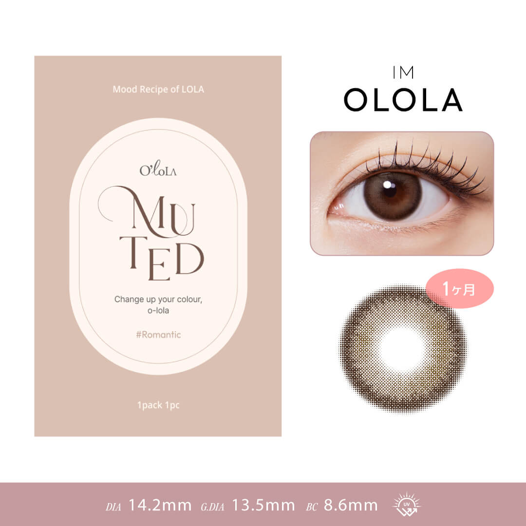 「ミューテッド」は、繊細で柔らかい3トーンカラコン。 瞳にナチュラルに溶け込みながら程よい発色とサイズ感。