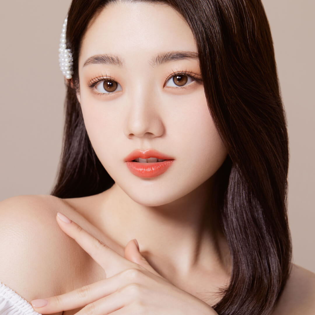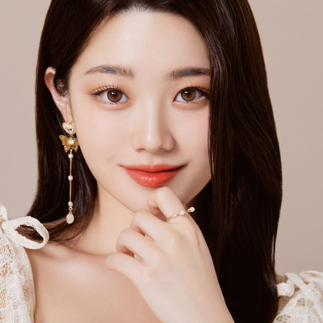 シアーなベージュの色味が美しい、「ヘーゼルブラウン」。 生まれつき明るめの茶目のような透明感たっぷりの瞳に。