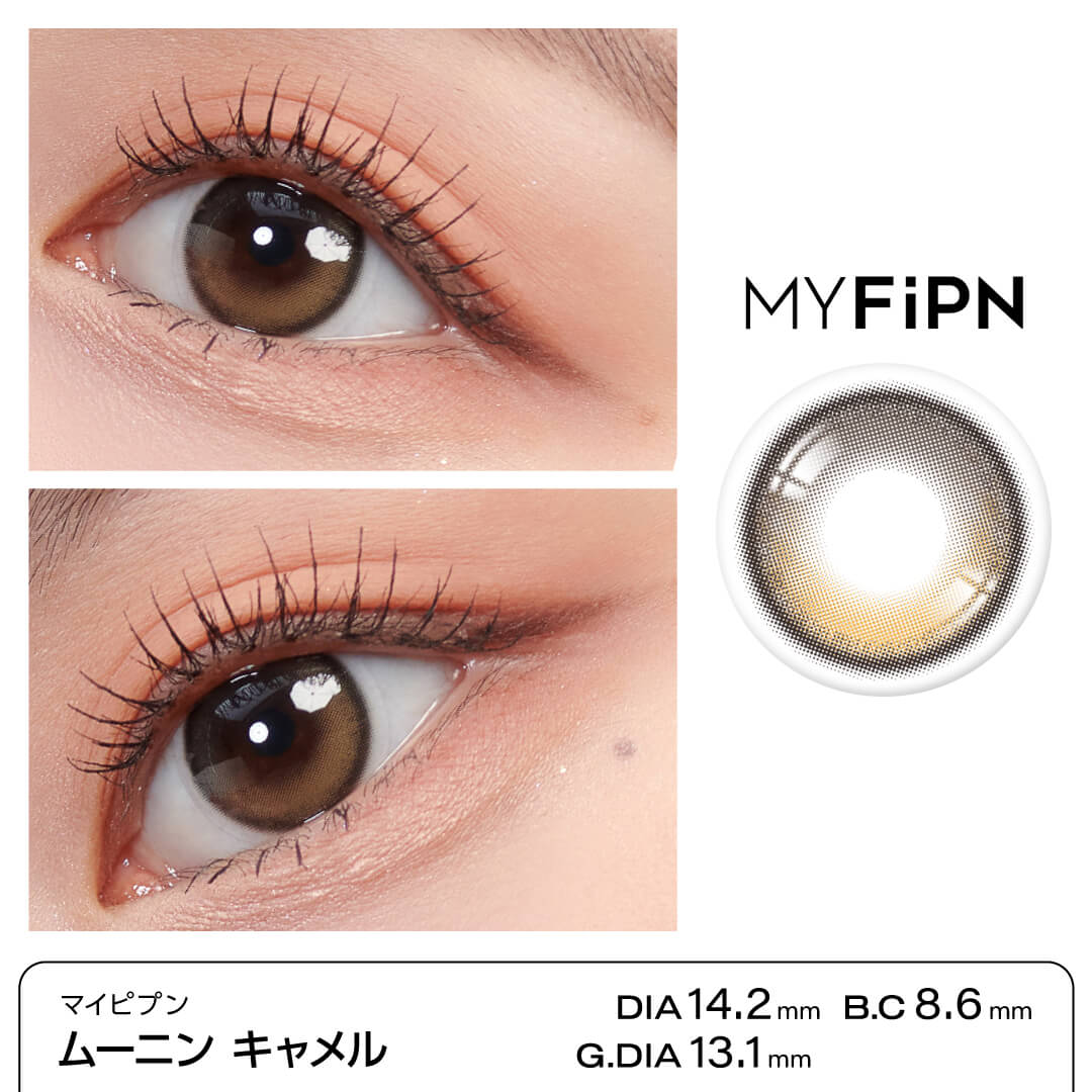 ゴールドキャメルがふわっと発色、グレーは白目をきれいにみせて立体感を。 定番の水光デザインをMyFiPN(マイピプン)らしいバランスで仕上げる。