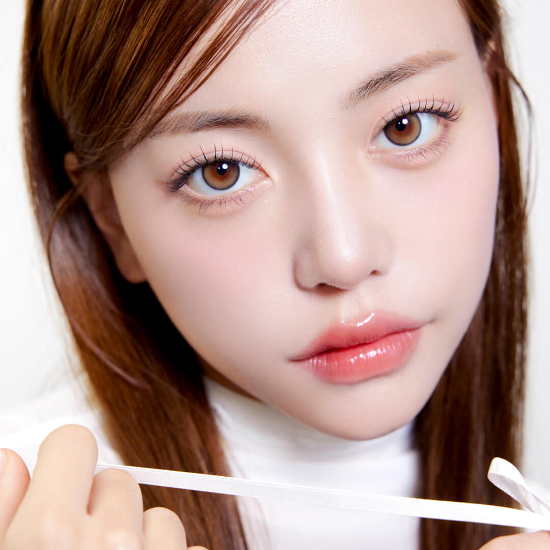 ゴールドキャメルがふわっと発色、グレーは白目をきれいにみせて立体感を。定番の水光デザインをMyFiPN(マイピプン)らしいバランスで仕上げる。